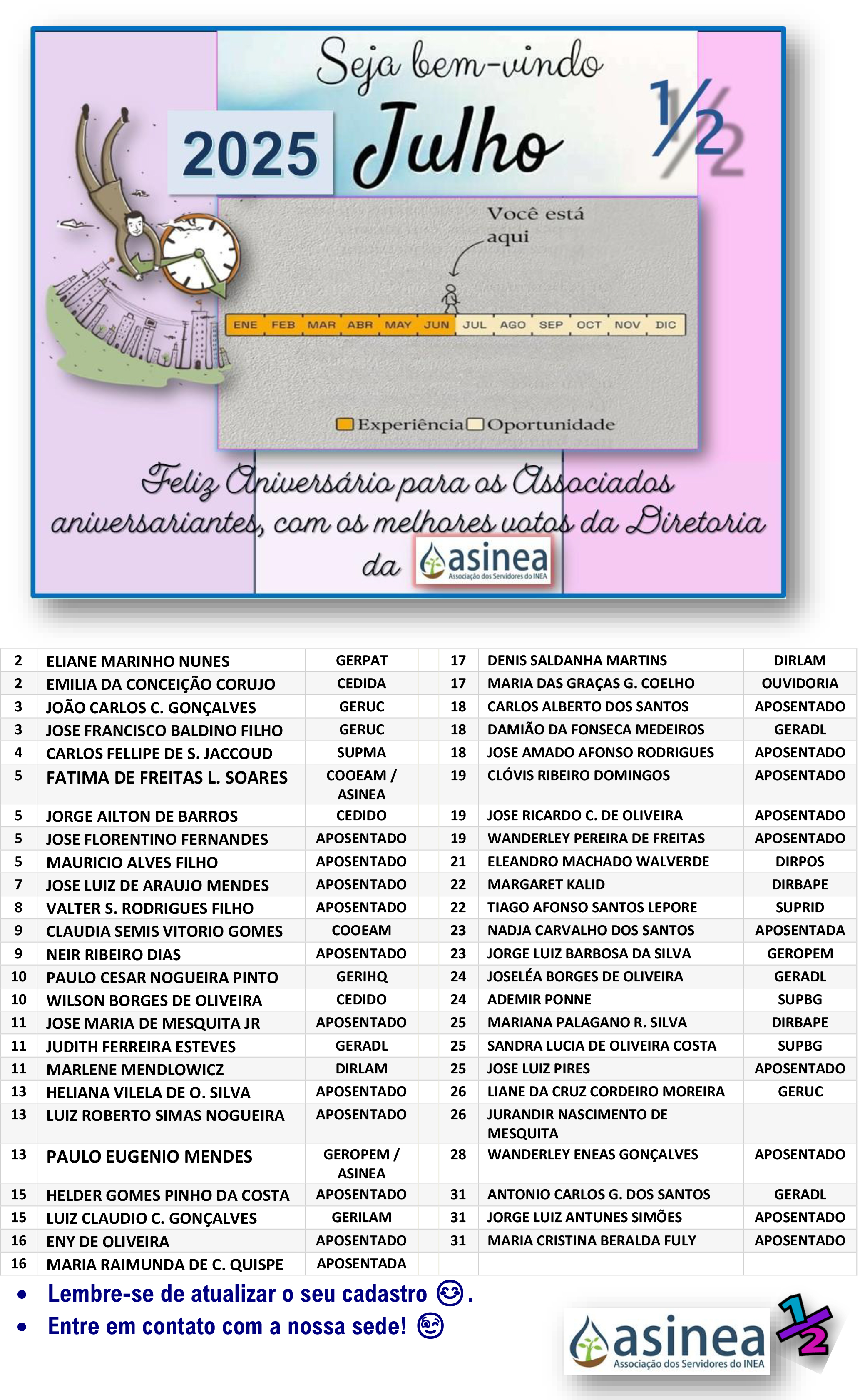 Relação de Aniversariantes Julho