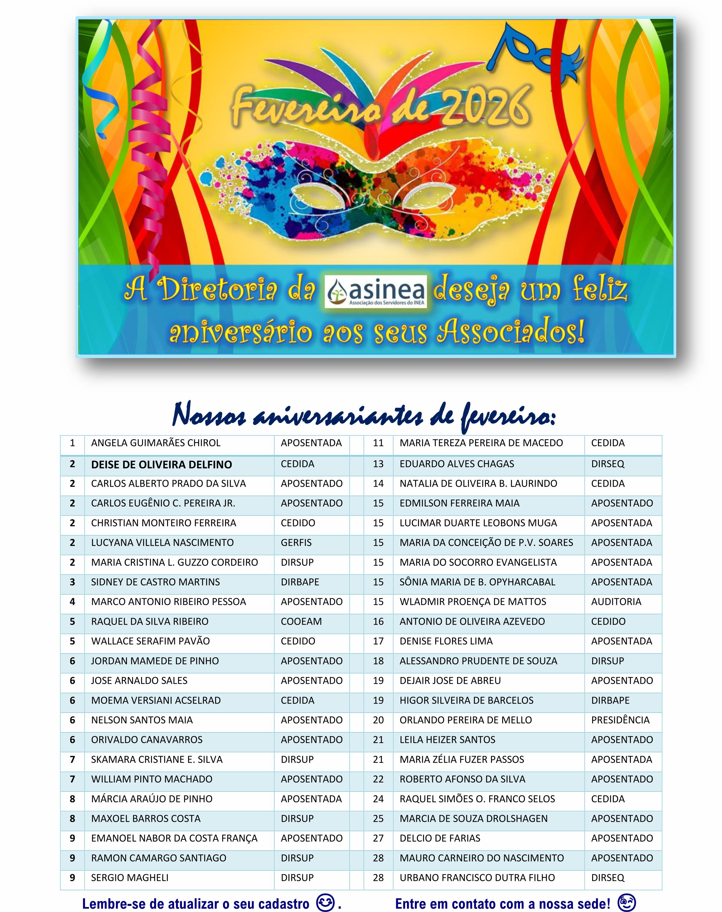 Relação de Aniversariantes de Fevereiro